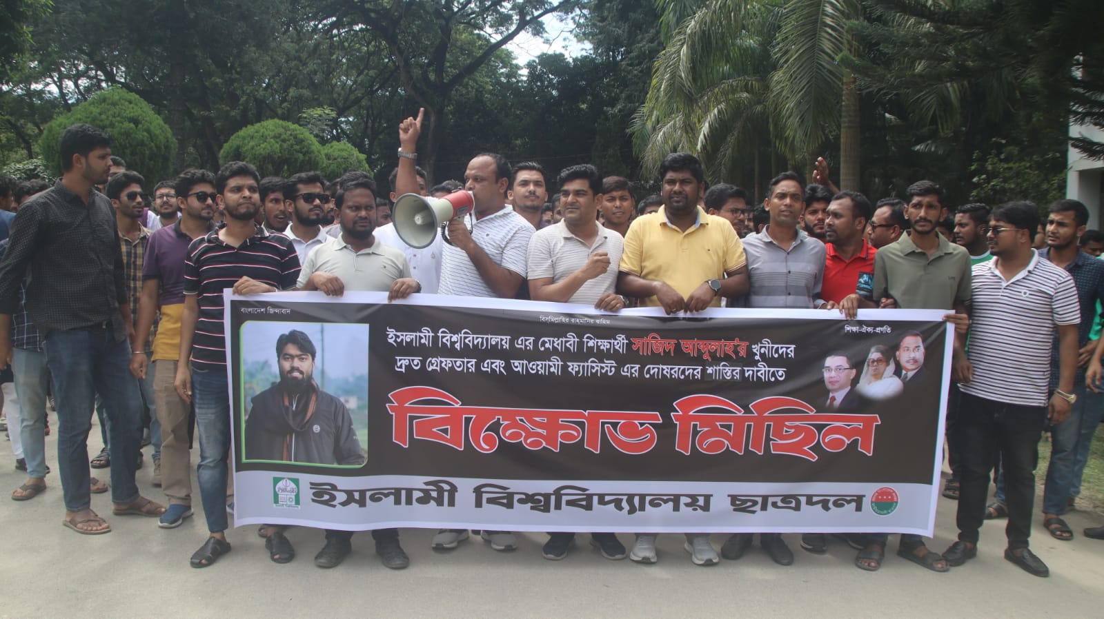 মানিক হোসেন, ইবি:ভিসেরা রিপোর্ট অনুযায়ী, গত জুলাইয়ে শ্বাসরোধে হত্যা করা হয় ইসলামী বিশ্ববিদ্যালয়ের (ইবি) শিক্ষার্থী সাজিদ আব্দুল্লাহকে। এঘটনার সাথে জড়িতদের দ্রুত গ্রেফতার ও বিচারের দাবিতে বিক্ষোভ মিছিল ও সমাবেশ শাখা ছাত্রদল। একই ঘটনায় দুপুর ১টা থেকে ৩টা পর্যন্ত অবস্থান কর্মসূচি করেছে বিভিন্ন বিভাগের আটজন শিক্ষার্থী।