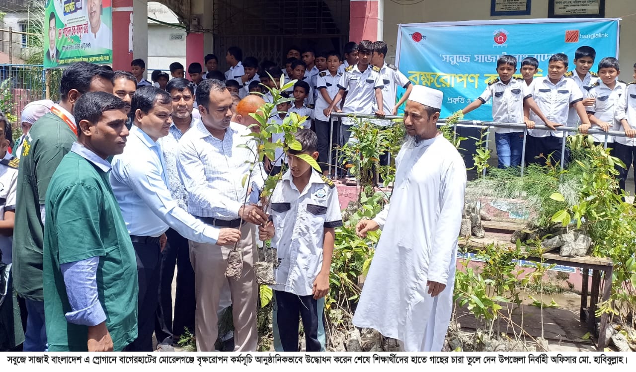 “সবুজে সাজাই বাংলাদেশ”এ স্লোগানে মোরেলগঞ্জে বৃক্ষরোপণ কর্মসূচি অনুষ্ঠিত