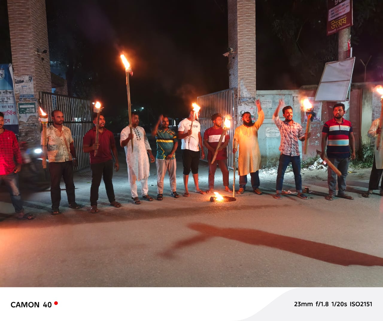 শুক্রবার দিবাগত রাত ১২ টার দিকে ছাত্র অধিকার পরিষদ নীলফামারী জেলা শাখার সভাপতি এ কে উদারের নেতৃত্বে প্রতিবাদ ও মশাল মিছিলটি উপজেলা শহরের প্রধান প্রধান সড়ক প্রদক্ষিণ করে থানার সামনে গিয়ে সমাবেশে মিলিত হয়। উপজেলা গণঅধিকার পরিষদের আহবায়ক ওবাইদুল ইসলামের সভাপতিত্বে আলোচনা সভায় প্রধান অতিথি হিসাবে বক্তব্য রাখেন জেলা যুব অধিকারের সভাপতি এ কে উদার।