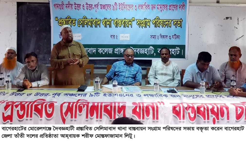 শেফালী আক্তার রাখি, মোরেলগঞ্জ প্রতিনিধি:বাগেরহাটের মোরেলগঞ্জে পানগুছি নদীর উত্তর ও পূর্ব অঞ্চলের ১০ টি ইউনিয়নের প্রায় ৩ লাখ মানুষের প্রাণের দাবি “প্রস্তাবিত সেলিমাবাদ থানা বাস্তবায়ন” চাই ব্যনারে বিভিন্ন সময়ে দাবি তুলে আসছেন। তারই ধারাবাহিকতায় শনিবার বিকেলে প্রস্তাবিত সেলিমাবাদ থানা বাস্তবায়ন সংগ্রাম পরিষদের সভা অনুষ্ঠিত হয়েছে।