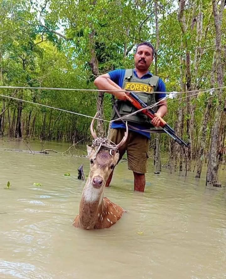 ১.কটকা এলাকায় বনরক্ষীদের সাথে অবাধে হরিণ বিচরণ করে।