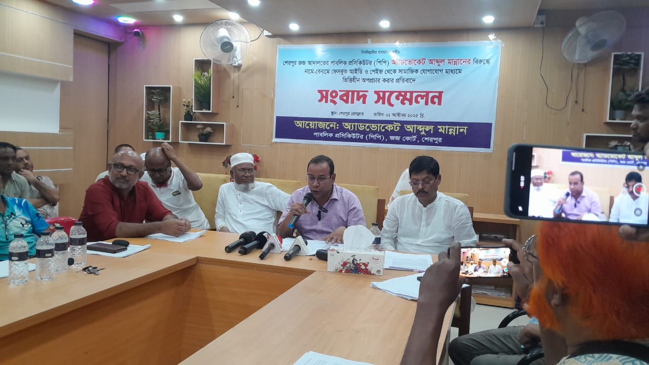 শেরপুরে নামে-বেনামে সামাজিক যোগাযোগ মাধ্যম ফেসবুকে মিথ্যা ও ভিত্তিহীন অপপ্রচারের প্রতিবাদে সংবাদ সম্মেলন করেছেন জেলা ও দায়রা জজ আদালতের পিপি এডভোকেট মোহাম্মদ আব্দুল মান্নান। ১ অক্টোবর বুধবার রাতে শেরপুর প্রেসক্লাব মিলনায়তনে ওই সংবাদ সম্মেলন করা হয়।