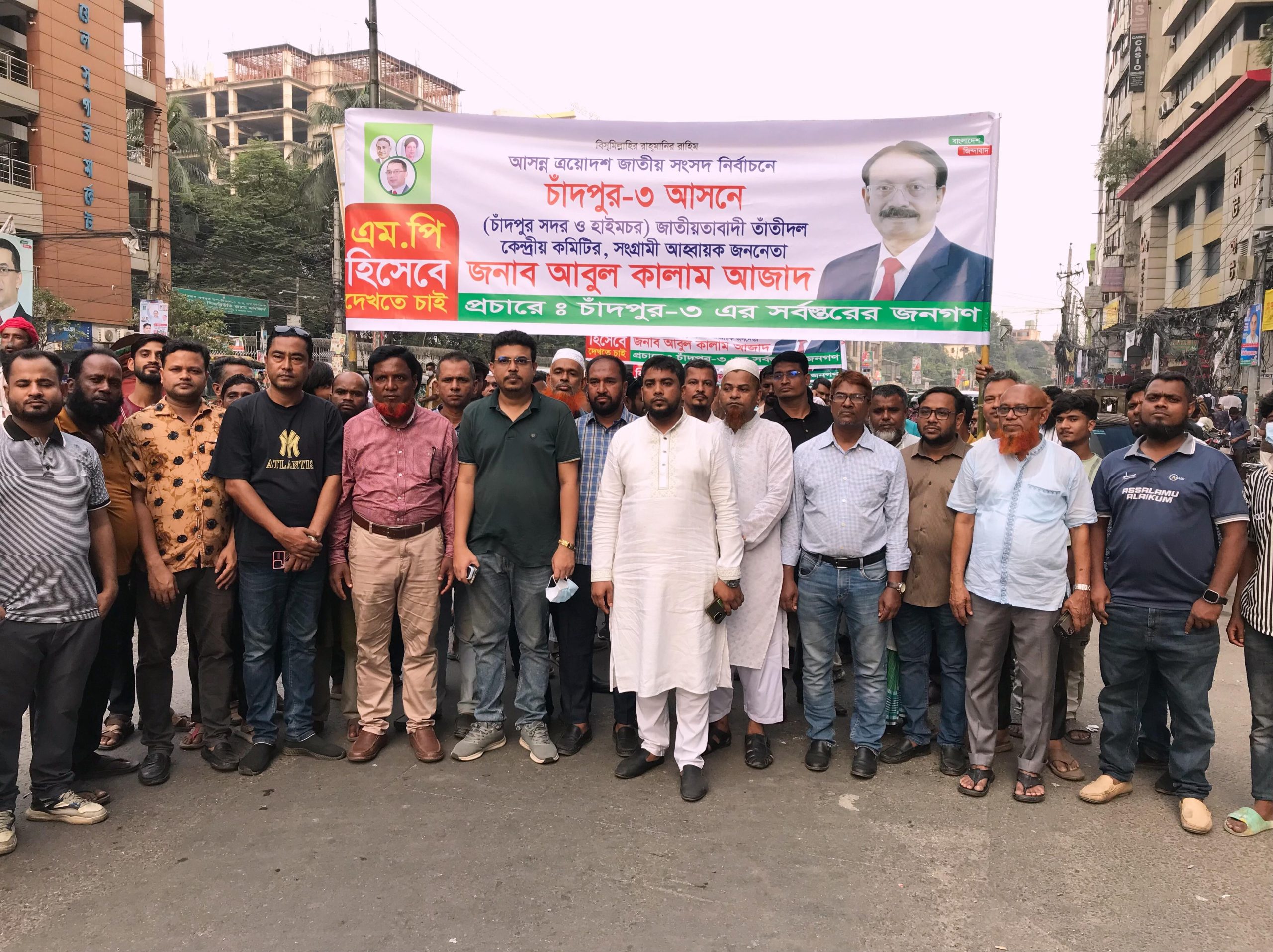 চাঁদপুর-৩ আসনে আবুল কালাম আজাদের মনোনয়ন দাবিতে বিএনপির কার্যালয়ে মিছিল-সমাবেশ