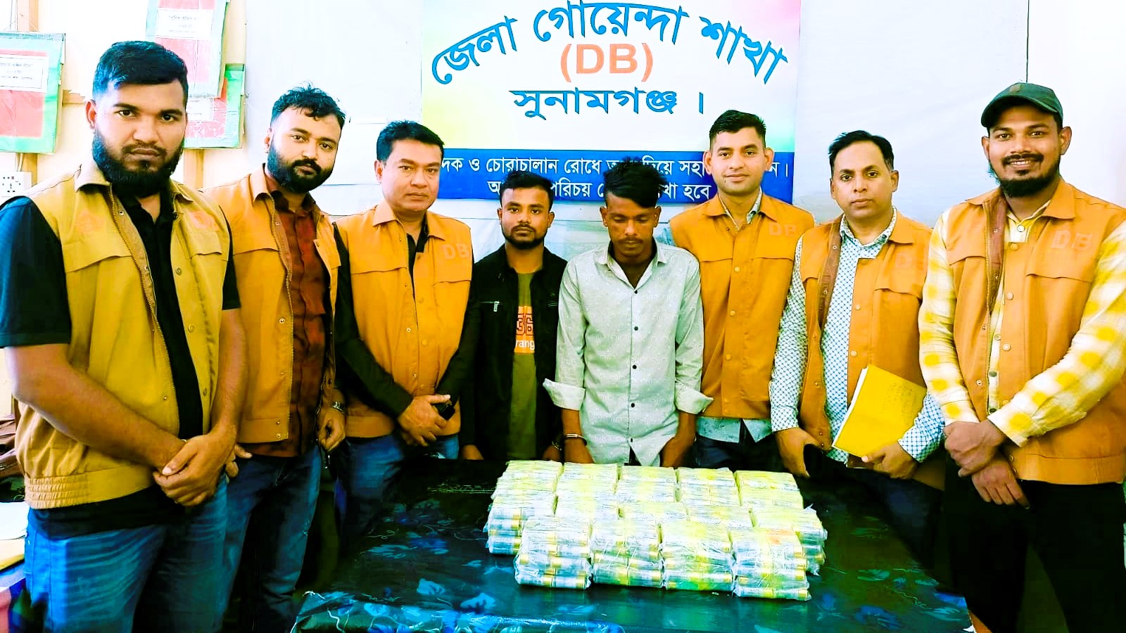 শনিবার সন্ধায় সুনামগঞ্জ জেলা পুলিশের অতিরিক্ত পুলিশ সুপার জাকির হোসাইন জানান. সীমান্তের ওপার ভারত থেকে দুটি মোটরনাইকেল যোগে চার আরোহি দুটি ব্যাগভর্তি শর্টগানের কাতর্ুৃজের চালান নিযে যাবার পথে জেলার জামালগঞ্জের সাচনা বাজার এলাকায় ডিবি পুলিশের একটি টিম মামুন ও উবায়দুলকে গ্রেফতার করে। এরপর তাদের হেফাজতে থাকা দুটি ব্যাগ তল্লাশী করে ৯৫০ রাউন্ড শর্ট গানের কার্তুজ ও একটি চোরাই মোটরসাইকেল জব্দ করা হয়।