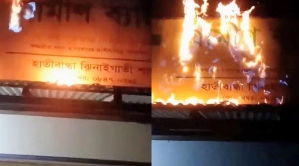 রাকিবুল আওয়াল পাপুল, শেরপুর জেলা প্রতিনিধিঃ শেরপুর জেলার ঝিনাইগাতীতে গ্রামীণ ব্যাংকের হাতিবান্ধা শাখা অফিসের গেটের সামনে আগুন দিয়েছে দুর্বৃত্তরা। বুধবার ভোররাতে এ অগ্নিকাণ্ডের ঘটনা ঘটে। এরপর রাত ৮টার দিকে নিষিদ্ধ ঘোষিত সংগঠন ছাত্রলীগের শেরপুর জেলা শাখার সাধারণ সম্পাদক রেজাউল করিম রেজা তার ফেসবুক আইডিতে আগুন দেওয়ার একটি ভিডিও প্রকাশ করেন।শাখা কর্তৃপক্ষ জানিয়েছেন, অফিসের কোনো কিছুই ক্ষতিগ্রস্ত হয়নি। বিষয়টি ঊর্ধ্বতন কর্মকর্তাদের জানানো হয়েছে।
