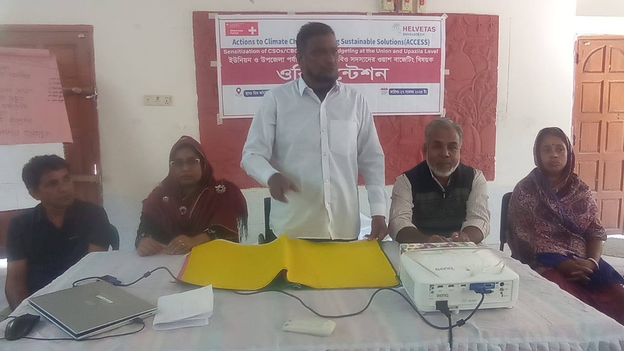 বৃহস্পতিবার বেলা ১১টায় মিম কমিউনিটি সেন্টারে বেসরকারি সংস্থা হেলভেটাস বাংলাদেশের সহোযোগিতায় ডরপ এক্সেস প্রকল্পের আয়োজনে এ সভায় সভাপতিত্ব করেন ওয়াশ বাজেট মনিটরিং কমিটির সভাপতি মো. খলিলুর রহমান।ওরিয়েন্টেশনে আলোচনা করেন ইউনিয়ন প্রশাসনিক কর্মকর্তা প্রভাংশু রায়, ডরপ-এর উপজেলা কো-অর্ডিনেটর সওকাত চৌধুরী, ইউপি সদস্য মো. শাহবুদ্দিন শিকদার, আসাদুজ্জামান সোহেল, মনির হোসেন, মরিয়ম বেগম,উপজেলা যুব গ্রুপের সভাপতি শেফালী আক্তার রাখি প্রমুখ।