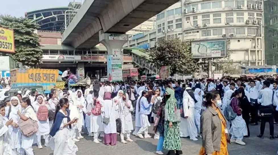প্রস্তাবিত ঢাকা কেন্দ্রীয় বিশ্ববিদ্যালয়ের স্কুলিং মডেল নিয়ে সৃষ্ট অনিশ্চয়তা বাতিলের দাবিতে রোববার (৭ ডিসেম্বর) বেলা ১১টা ৪৫ মিনিটের দিকে শাহবাগ মোড় অবরোধ করেন ঢাকার পাঁচটি কলেজের শিক্ষার্থীরা। এই অবরোধের ফলে গুরুত্বপূর্ণ শাহবাগ মোড়ে সব ধরনের যানচলাচল বন্ধ হয়ে যায়।