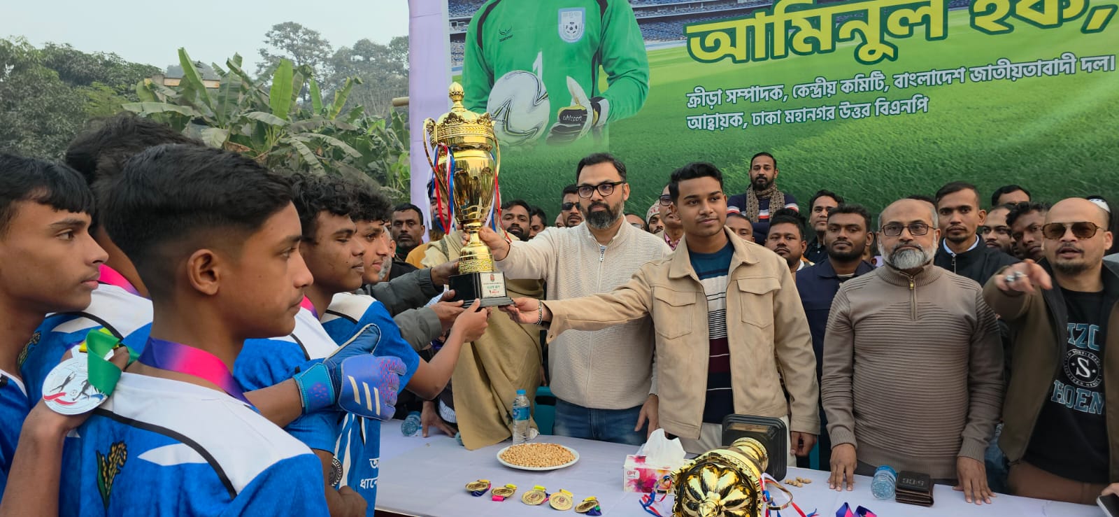 খেলা শেষে চ্যাম্পিয়ন ও রানার্সআপ দলের হাতে পুরস্কার তুলে দেন বিএনপির কেন্দ্রীয় ক্রীড়া বিষয়ক সম্পাদক এবং ঢাকা মহানগর উত্তর বিএনপির আহ্বায়ক, ঢাকা–১৬ আসনে ধানের শীষের প্রার্থী আমিনুল হক। চ্যাম্পিয়ন দলকে এক লাখ টাকা এবং রানার্সআপ দলকে ৫০ হাজার টাকা পুরস্কার দেওয়া হয়।
