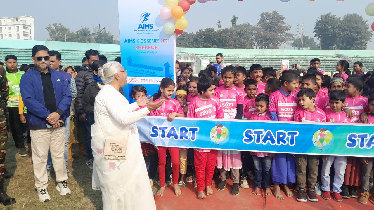 আয়োজকরা জানান, মহান স্বাধীনতার ৫৪ বছর উপলক্ষে রানবাংলা ও শেরপুর রানার্স কমিউনিটির সহযোগিতায় অ্যাসোসিয়েশন অব ইন্টারন্যাশনাল ম্যারাথন্স-এইমস কিডস সিরিজের এ দৌড় প্রতিযোগিতায় ১০০ মিটার, ৫০০ মিটার ও ১ হাজার মিটার- এ তিনটি ক্যাটাগরিতে ২ থেকে ১৪ বছর বয়সী প্রায় ৬০০ শিশু অংশ নেয়। রেজিস্ট্রেশন ফি ছিল মাত্র ৫৪ টাকা। তাদের মধ্যে অর্ধেকই শেরপুর জেলার গারো পাহাড়ি এলাকার পিছিয়ে পড়া ক্ষুদ্র নৃ-জনগোষ্ঠী, বেদে ও হরিজন পল্লীর শিশু। এছাড়া প্রত্যন্ত অঞ্চলের মাদ্রাসার শিশুরাও এতে অংশ নেয়। প্রত্যেক প্রতিযোগী শিশুর জন্য ছিল জার্সি, মেডেল, খাবার ও উপহার। ছোট ছোট শিশুদের দৌড় দেখতে স্টেডিয়ামে উপস্থিত দর্শক উৎসাহ-উদ্দীপনায় মেতে ওঠেন। দৌড় শেষে ক্ষুদ্র নৃ-গোষ্ঠীর শিল্পীদের অংশগ্রহণে মনোজ্ঞ নৃত্য পরিবেশন করা হয়। শিশুদের স্বাস্থ্য, শিক্ষা ও খেলাধুলার প্রতি আগ্রহ বাড়াতে এ ধরনের উদ্যোগকে সাধুবাদ জানিয়েছেন স্থানীয় সচেতন মহল।